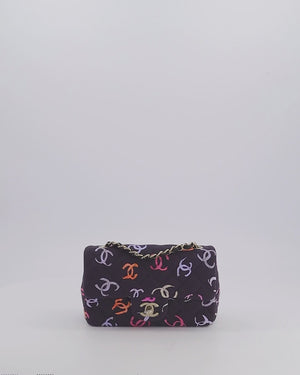 Chanel 24/S Navy Multicolour Jersey Mini Rectangular CC Flap Bag with Champagne Gold Hardware