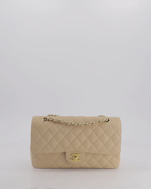 Chanel Beige Clair Medium Stitched Edge Classic Double Flap Bag in Caviar Leather with Gold Hardware