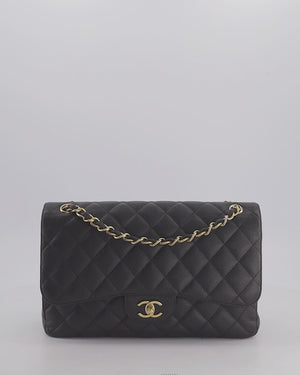 Chanel Black Jumbo Classic Double Flap Bag in Caviar Leather with Gold Hardware