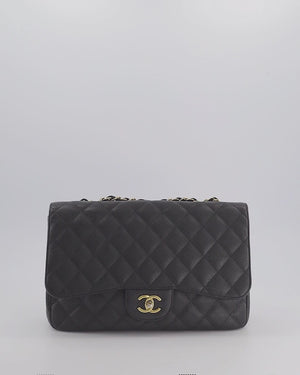 Chanel Black Jumbo Classic Single Flap Bag in Caviar Leather with Gold Hardware