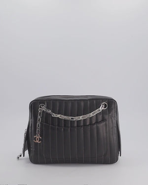 Chanel Black Mademoiselle Ligne Vertical Quilted Camera Bag in Lambskin Leather with Silver Hardware
