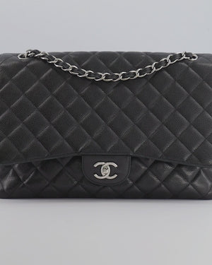 Chanel Black Maxi Classic Single Flap Bag in Caviar Leather with Silver Hardware