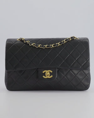 Chanel Black Vintage Classic Medium Double Flap Bag in Lambskin Leather with 24k Gold Hardware
