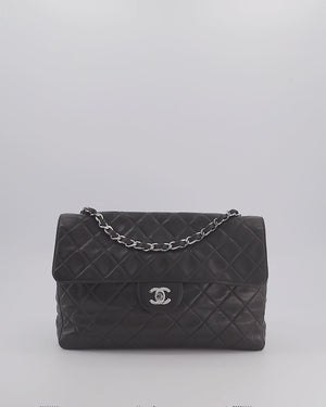 Chanel Black Vintage Jumbo Single Flap Bag in Lambskin Leather with Silver Hardware