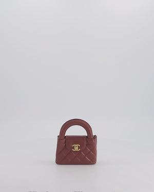Chanel Brown Nano Mini Kelly Shopping Bag in Aged Calfskin Leather with Brushed Antique Gold Hardware