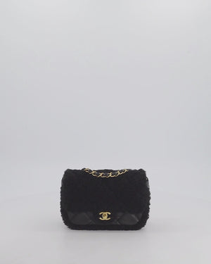 *SUPER RARE* Chanel Classic Mini Rectangular Shearling Flap Bag in Black Lambskin Leather with Gold Hardware