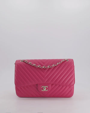 Chanel Hot Pink Chevron Jumbo Double Flap Bag in Lambskin Leather with Champagne Gold Hardware