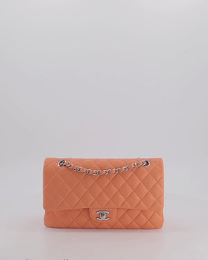 Chanel Medium Orange Classic Double Flap Bag in Lambskin Leather with Silver Hardware