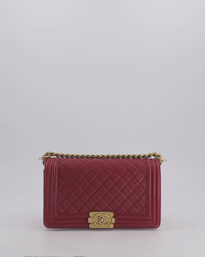 Chanel Burgundy Medium Boy Bag in Lambskin Leather with Bushed Gold Hardware