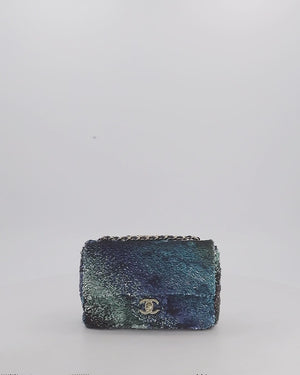 Chanel Shaded Blue Green Sequins Single Mini Flap Bag with Gold Hardware