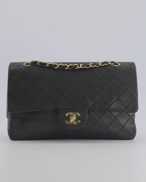 Chanel Vintage Black Medium Classic Double Flap Bag in Lambskin Leather with 24K Gold Hardware