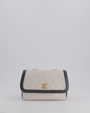Chanel Vintage White, Black Trim Matelasse Cross-Body Bag in Lambskin Leather with 24K Gold Hardware
