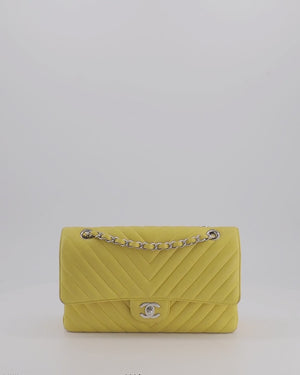 Chanel Yellow Chevron Medium Classic Double Flap Bag in Lambskin Leather with Silver Hardware