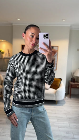 Christian Dior Black Houndstooth Long Sleeve Logo Jumper Size FR 34 (UK 6)