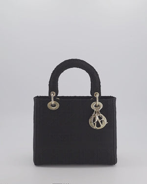 Christian Dior Black Medium Lady D-Lite Bag Bag in Cotton Cannage Canvas with Champagne Gold Hardware RRP £4,100
