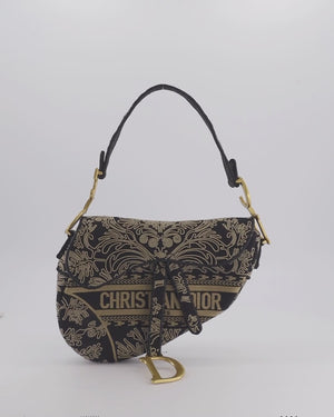 Christian Dior Blue and Beige Ornamental Embroidery Saddle Bag with Antique Gold Hardware