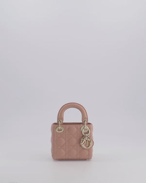 Christian Dior Blush Pink Micro Lady Dior Bag In Cannage Quilted Lambskin Leather with Gold Hardware