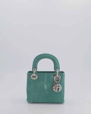 Christian Dior Mini Lady Dior Bag in Teal Sting Ray Leather with Silver Hardware
