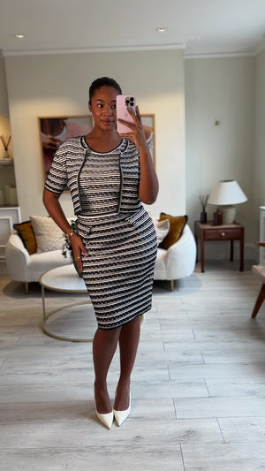 Christian Dior Navy and White Striped Textured Midi Dress and Cardigan Set Size FR 42 (UK 14)