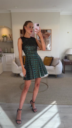 Dolce & Gabbana Turquoise Metallic and Gold Jacquard Mini Dress Size IT 38 (UK 6)