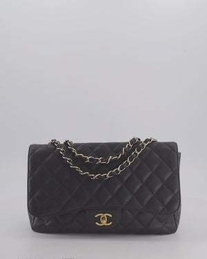 Chanel Black Jumbo Classic Single Flap Bag in Caviar Leather with Gold Hardware