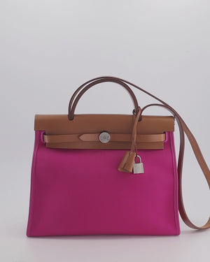 *FIRE PRICE* Hermès Herbag 31 Zip Bag in Magnolia Toile Canvas, Fauve Vache Hunter Leather with Palladium Hardware