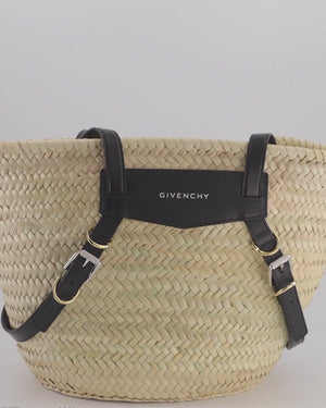 Givenchy Voyou Natural and Beige Straw Basket with Leather logo Bag