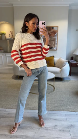 Gucci Cream Crewneck Knit Jumper with Orange Stripes XXS (UK 4)