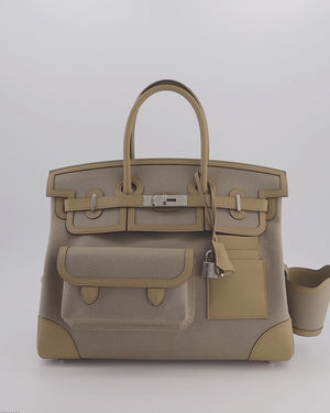 *SUPER HOT & RARE* Hermès Birkin 35 Cargo Bag in Beige Marfa Toile Goeland and Veau Swift Leather with Palladium Hardware