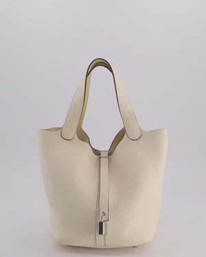 Hermes Picotin Eclat Lock 22 Bag in Nata Clemence Leather with Jaune Poussin Interior Handle & Palladium Hardware