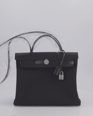 Hermès Herbag 31 Zip Bag in Noir Toile Officier Canvas, Noir Vache Hunter Leather with Palladium Hardware