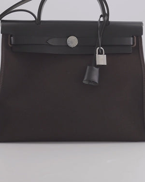 Hermès Herbag 31 Zip Bag in Ebene Toile Militaire Canvas and Black Vache Hunter Leather with Palladium Hardware