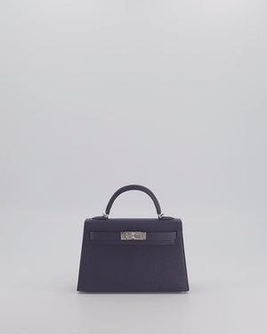 Hermès Mini Kelly II 20 Verso Bag in Bleu Encre and Rouge de Coeur Chevre Mysore Leather with Palladium Hardware