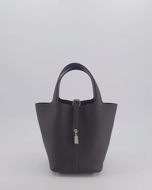 Hermès Picotin Lock 18 Eclat Bag in Caban Clemence Leather with Bleu Tie Interior Handle and Palladium Hardware