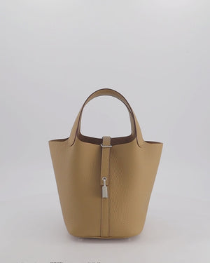 Hermès Picotin Lock 18 Bag in Biscuit Clemence Leather with Palladium Hardware