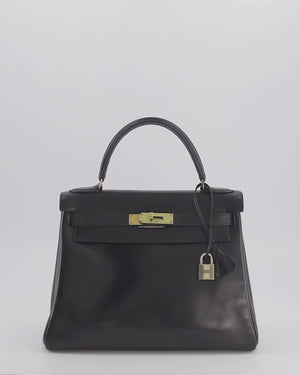 *FIRE PRICE* Hermès Vintage Kelly 28 Retourne Bag in Noir Box Leather with Gold Hardware
