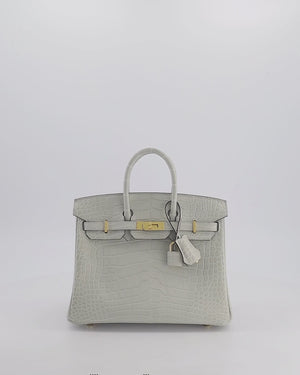 *HOLY GRAIL* Hermès Birkin Bag 25 Gris Neve Matte Alligator Mississippiensis Leather with Gold Hardware