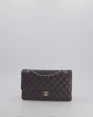 *HOT* Chanel Dark Chocolate Classic Medium Double Flap Bag in Caviar Leather with Champagne Gold Hardware