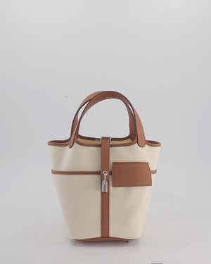 *HOT* Hermès Picotin 18 Lock Cargo Bag in Ecru Canvas & Gold Swift Leather with Palladium Hardware