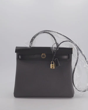 *HOT & RARE* Hermès Herbag 31 Laque Zip Bag in Ardoise Toile Militaire Canvas, Noir Vache Hunter Leather with Gold & Noir Hardware