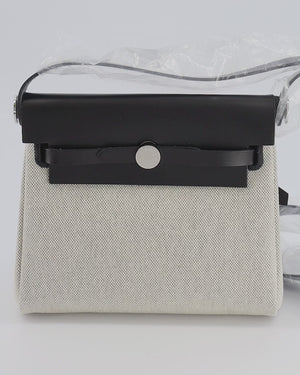 *NEW RELEASE & RARE* Hermès Herbag Zip 20 Bag in Ecru & Vert Amande Viking Toile H Canvas & Noir Vache Hunter Leather with Palladium Hardware