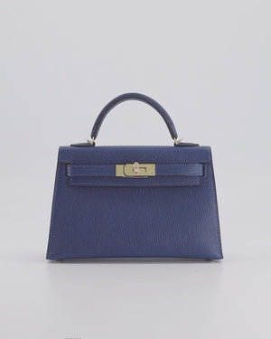 *RARE* Hermès Mini Kelly HSS II 20cm Bag In Deep Blue Chèvre Mysore Leather with Orange Poppy Interior and Permabrass Hardware