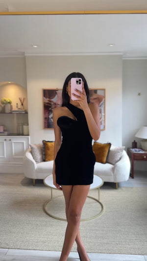 Saint Laurent Black One-Shoulder Velvet Mini Dress FR 38 (UK 10)