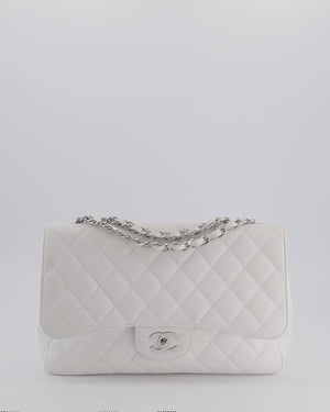 *SUPER FIRE PRICE* Chanel White Jumbo Classic Single Flap Bag in Caviar Leather with Silver Hardware