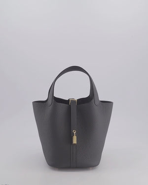 *SUPER HOT* Hermès Picotin Lock 18 Bag in Gris Misty Clemence Leather with Permabrass Hardware