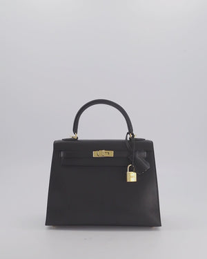 *SUPER RARE* Hermès Kelly 25 Sellier Bag in Noir Chèvre Chamkila Leather with Gold Hardware