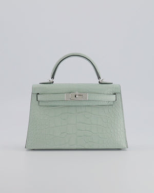 *SUPER RARE* Hermès Mini Kelly II 20 Bag in Vert d'Eau Alligator Mississippiensis Leather with Palladium Hardware