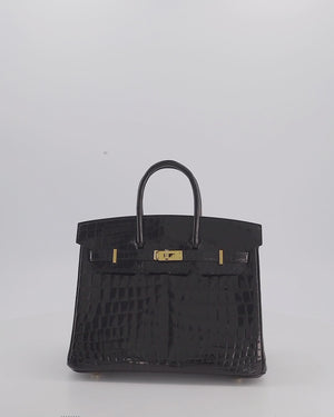 *ULTRA RARE* Hermès Birkin 25 Retourne Bag in Noir Shiny Crocodile Niloticus Leather with Gold Hardware
