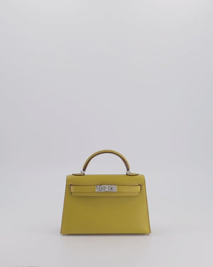 Hermès Mini Kelly II 20 Verso Bag in Jaune Ambre Chèvre Mysore Leather with Gold Interior and Palladium Hardware